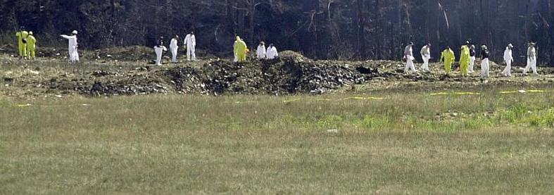 Below:  "Crash site" of "Flight 93" in Pennsylvania and ... a Boeing 757