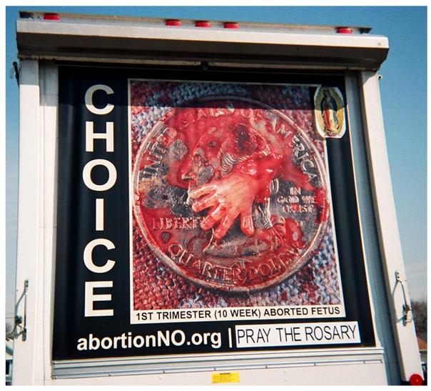 Note: The website shown on the truck and on these posters (AbortionNo.org) does sell 4 x 3 foot handheld first trimester abortion picture posters ... that are good for use on the sidewalks outside of the abortion chambers such as "planned parenthood". Using the handheld signs (from what I can tell) I was able to keep 30 or 35 people from going into local abortion chamber in Shrewsbury NJ (a "planned parenthood" site). The 4 x 3 foot picture posters are vinyl laminated, simply clip them to a posterboard cut to size.
