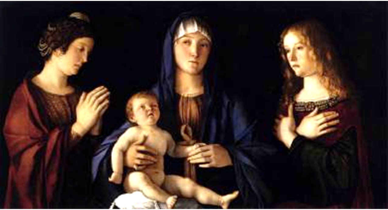 Left: The Blessed Virgin, Saint Mary Magdelan, and Saint Catherine (by Bellini)