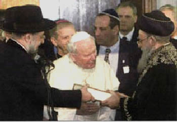 Non-Catholic apostate "john paul 2" meeting "rabbis" on his trip to Israel in the year 2000.