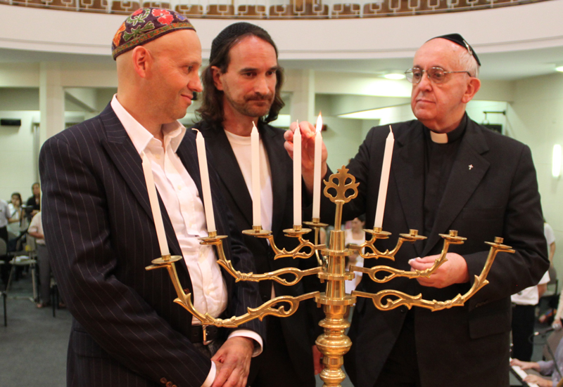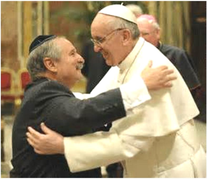 What is Bergoglio doing here ? Very simple ... he is frantically working for the eternal damnation of the un-baptized pagans who call themselves jews ... confirming them in their error and thereby shoving them toward Hell.