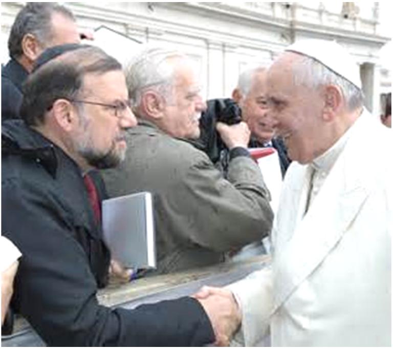 Un-baptized pagan David Rosen ... being greeted here by "john paul 2" was ... "invested" with a Papal knighthood by "benedict-16" ... thereby working for Rosen's eternal damnation, confirming Rosen in his error.