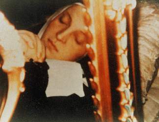 Her body was so discoloured the nuns were anxious about leaving her coffin open in the choir, but as the procession made its way to the Chapel, her natural colour returned and within two days her body appeared as if she was sleeping.
