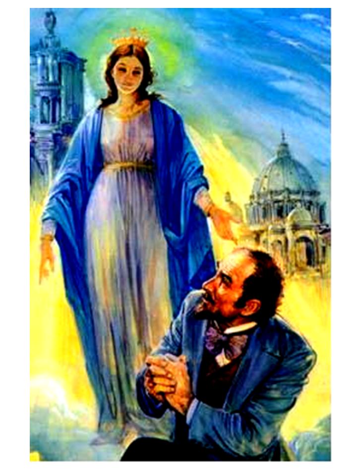 After his conversion, Alphonse assisted his brother, Theodor, in founding the Sisterhood of Our Lady of Sion in 1843, and was ordained priest himself in 1847 - entering the Society of Jesus. Desirous, however, to devote himself entirely to the conversion of the un-baptized pagans who refer to themselves as jews, he left the Society with the consent of Pope Pius IX, transplanted the Sisters of Sion to Jerusalem in 1855, and built for them in 1856 the large Convent of Ecce Homo with a school and an orphanage for girls. In 1860 he built the Convent of St. John on the mountain at Ain Karim, together with a Church and another orphanage for girls. Here Alphonse laboured with a few companions (Pères de Sion) for the conversion of the people who call themselves jews and for the mohammedans until his death. He died on May 6, 1884 after 37 years as a priest. Ratisbonne did try to get in contact with Catherine Labouré, but never succeeded, as the Sister was shielded from the outside world. There were so many miracles operated by the Blessed Virgin in the Shrine, that on January 17, 1892, Pope Leo XIII coronated the venerated icon with a diadem.